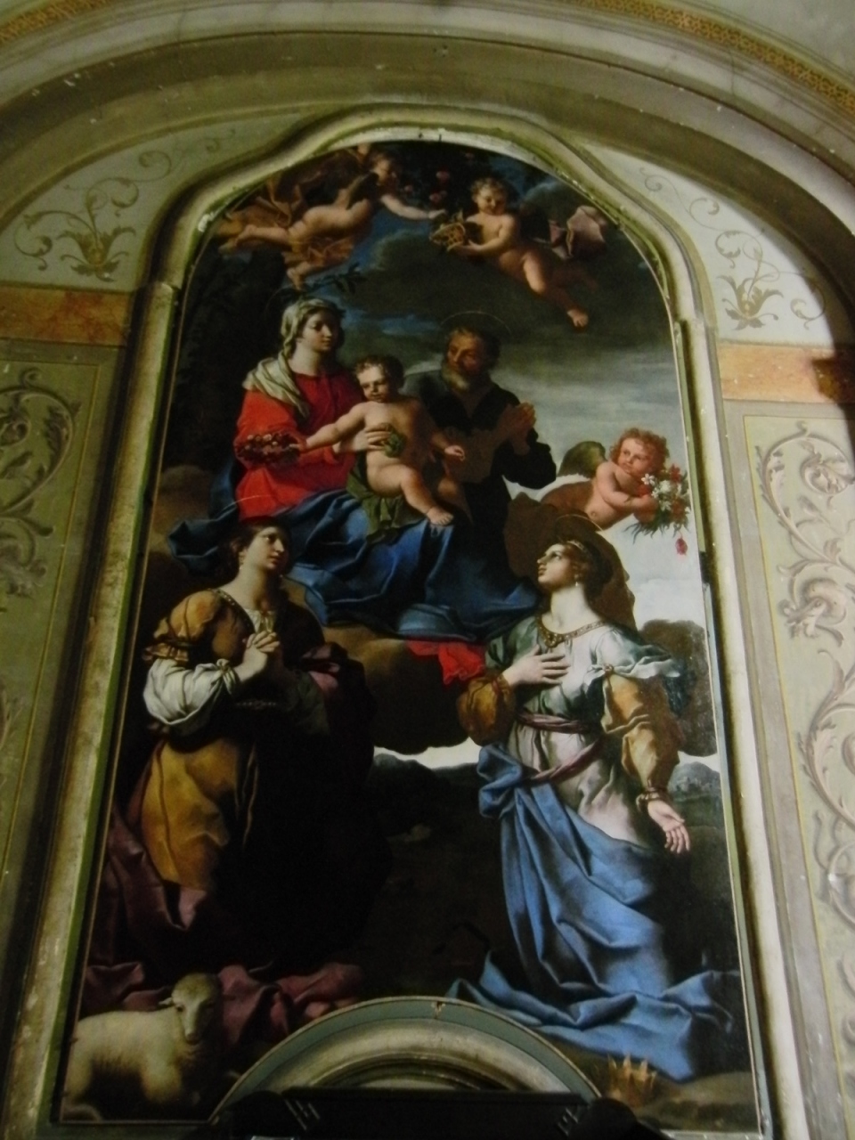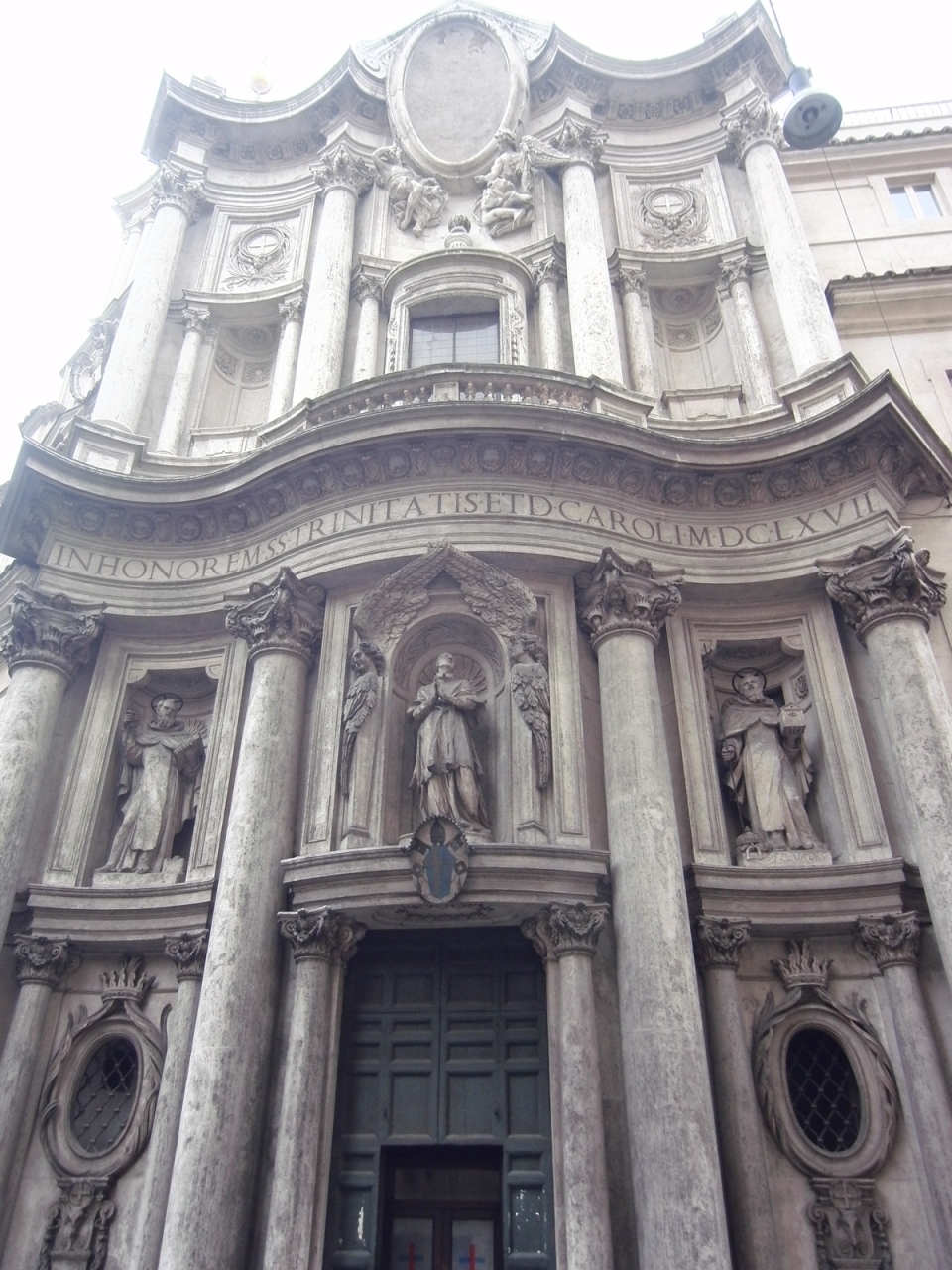 ベルニーニのライバルであるボロミーニの代表作だそうです。1664~67年建立されました。波打つファサードや縦長のだ円形プラン・天井の装飾が有名です。ファサードの写真は道が狭くて車も通るので撮りづらいです。