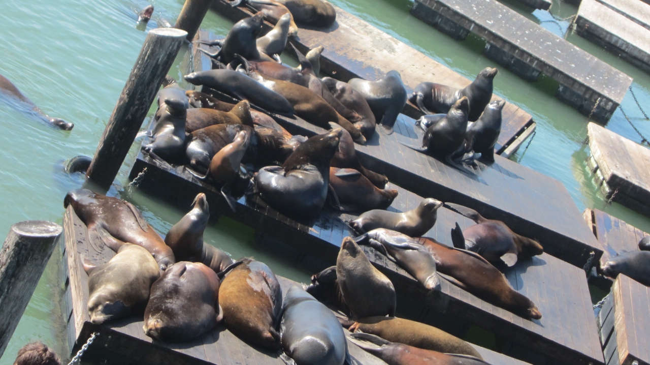 桟橋でひなたぼっこをしているアザラシ?オットセイ?を観たり。