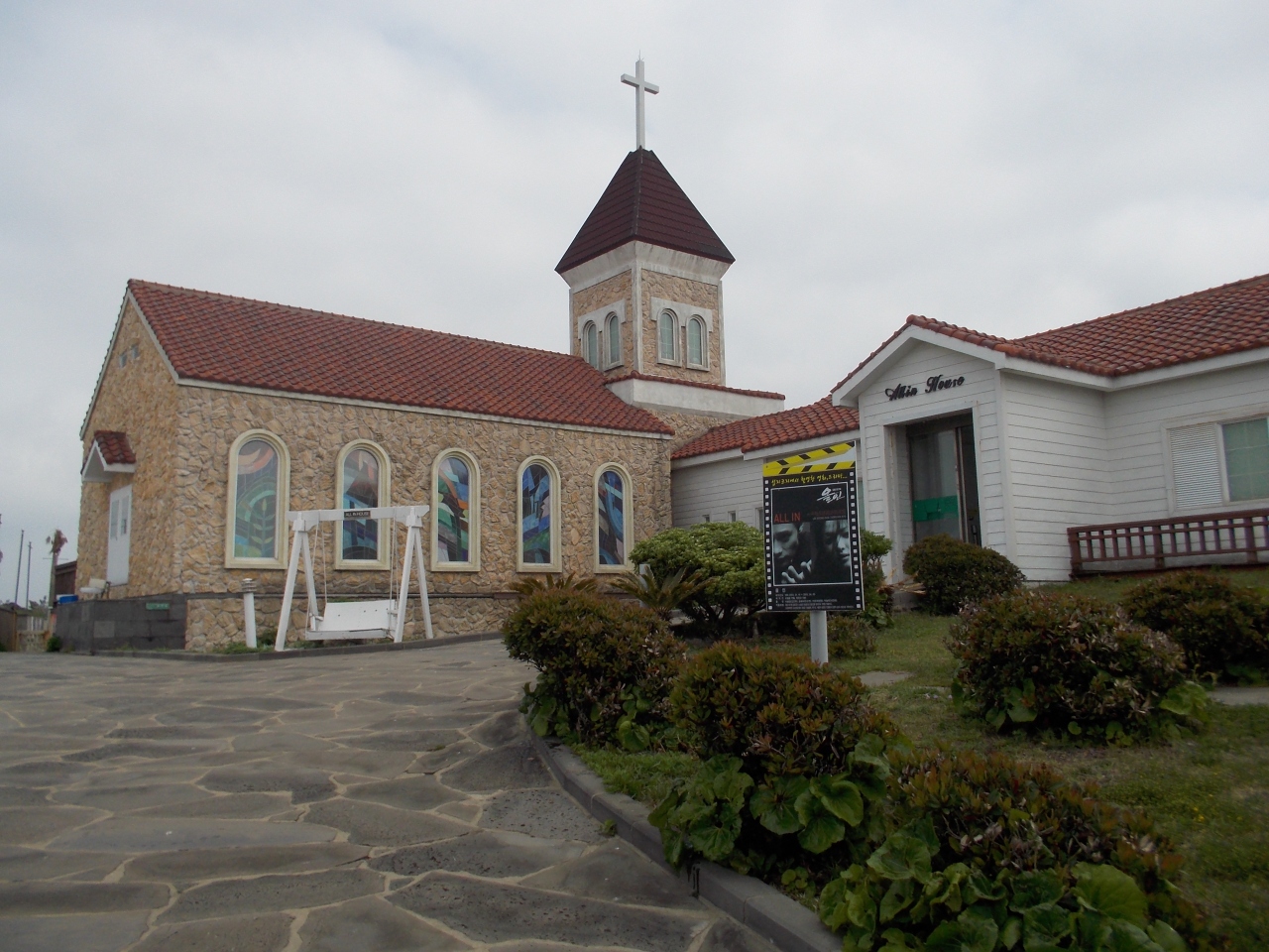 韓国ドラマ「オールインワン」のロケ地で海岸線も美しい済州島随一の景勝地。 赤い屋根で白い教会風の家が、とても印象的。 海岸線沿いに丘を登りながら歩きますが、最先端まで行っても、それほど疲れない。 観光は少なくても1時間は見ておくとよいでしょう。