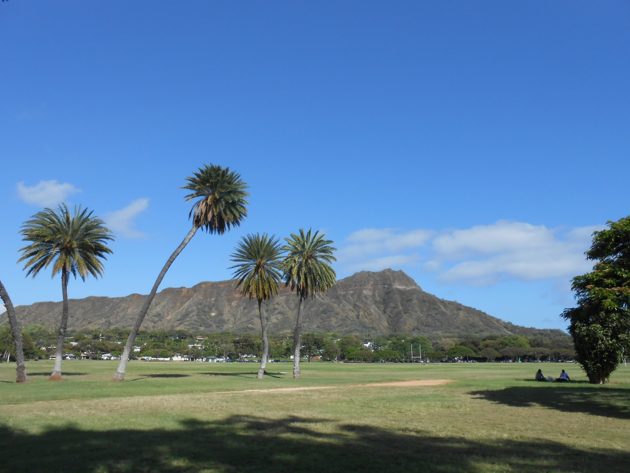 ワイキキビーチから徒歩数分で行ける、大きな公園です。ダイヤモンドヘッドが目の前に見え、のんびりと休憩することができます。