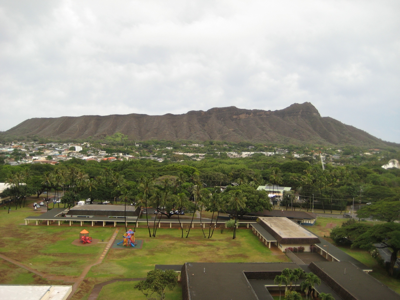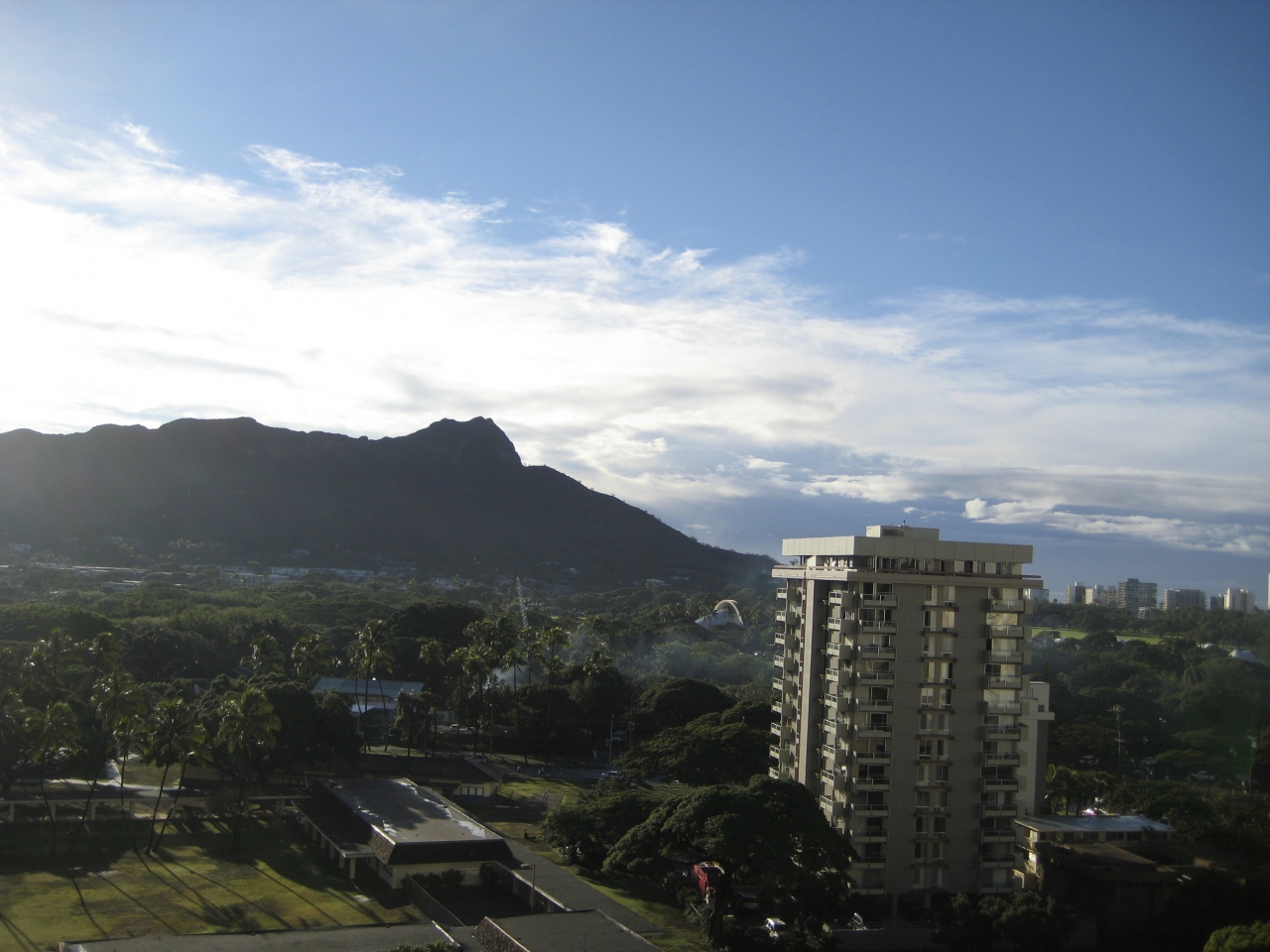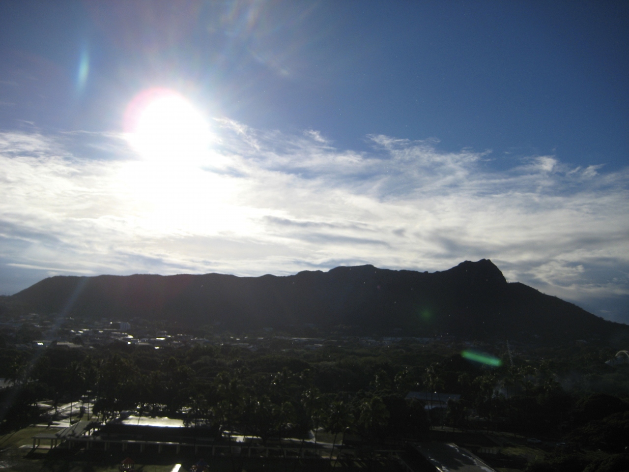 2010年12月ホノルルマラソンの際にコース上、ダイヤモンドヘッドの裾を走らせていただきました。山を上がっていくと、海の景色がとても奇麗です。途中景色を見る為に止まるスポットもありました。また、サンセットホテルのお部屋のテラスからも奇麗にダイアモンドヘッドが見れました。