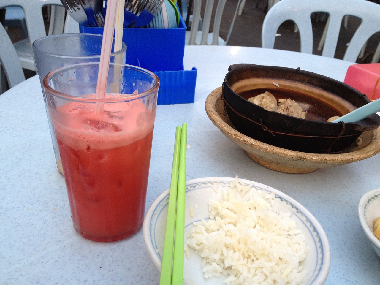 賑わう屋台ストリートです。観光客も多く、写真入りのメニューとかも見せてくれたような気がします。私は、サテ(甘いピーナッツのタレのやつ)、バクテー、スイカジュースで晩ごはん。めちゃくちゃ安いわけじゃないけど、美味しかったし、お腹もこわさなかったし、雰囲気も楽しくて良かったです。