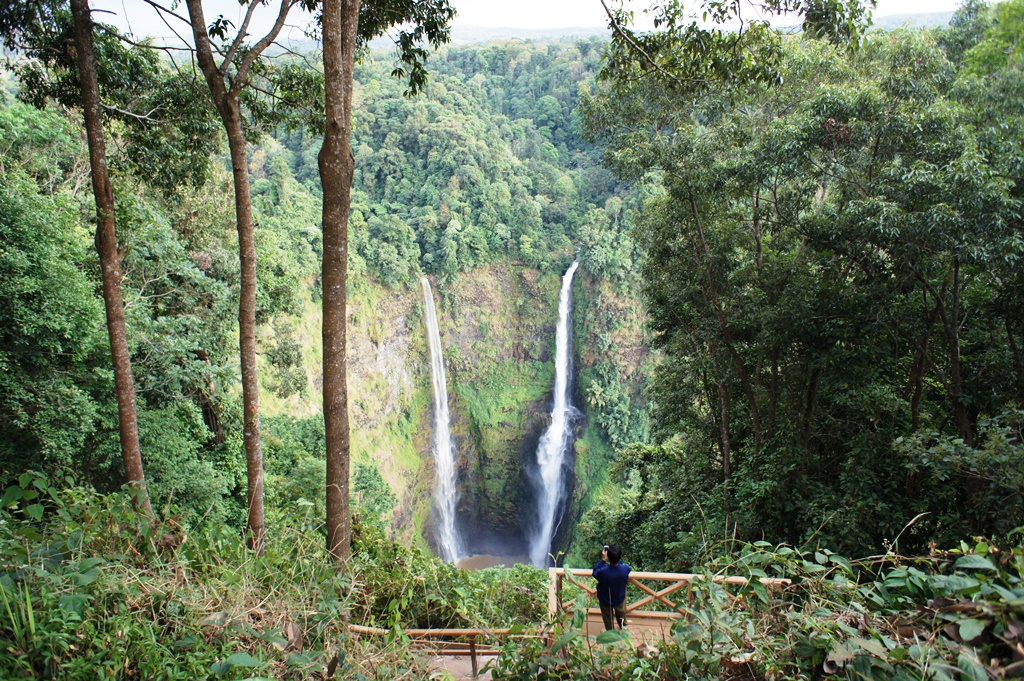 友達とタート・ファーンを訪れました。落差のある2本の滝は本当に見ごとで、迫力もあります。訪れたのは乾季の始めでしたが、それでも水量はありました。タイからの団体客の人達がこの時には来ていました。
