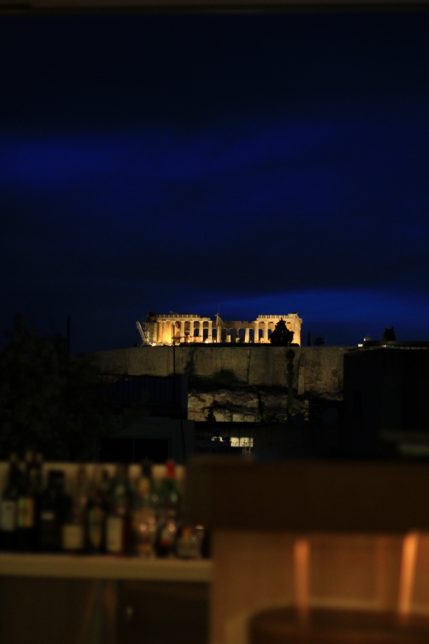 アテネの旅行情報を見たところ、アクロポリスを望むレストランはいくつもありますが、特にアクロポリスに近いレストランは夜はタクシーでの送迎が必須とガイドブックに書かれていたり、現在の状況では夜あまり出歩けないかなと考えて、ホテルのレストランで望見出来る場所ということで探しました。