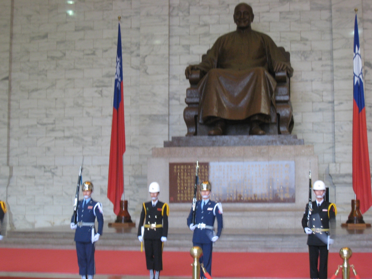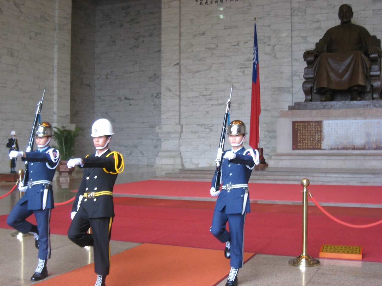 中世記念堂が開堂する前に行ったため堂の前で15分程待ちましたが結構観光客が多かったです。9時になると大きな門が開き中に入れます。入ると腰掛けた蒋介石の大きな銅像が鎮座しています。ほどなく儀仗隊の衛兵交代が始まります。交代式は1時間毎に行われるのでその時間を狙って行って見てください。