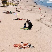 とにかく広い砂浜がえんえんと続き、波は高めで、ウィンドサーフィンをしている人が目立ちました。