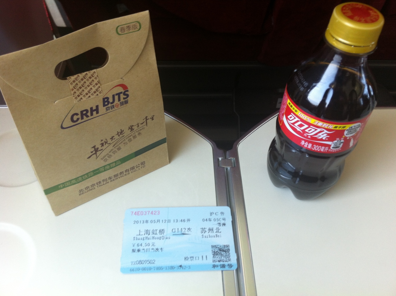上海と蘇州を行ききした際は、動車ではなく高鉄の1等車に乗りました。