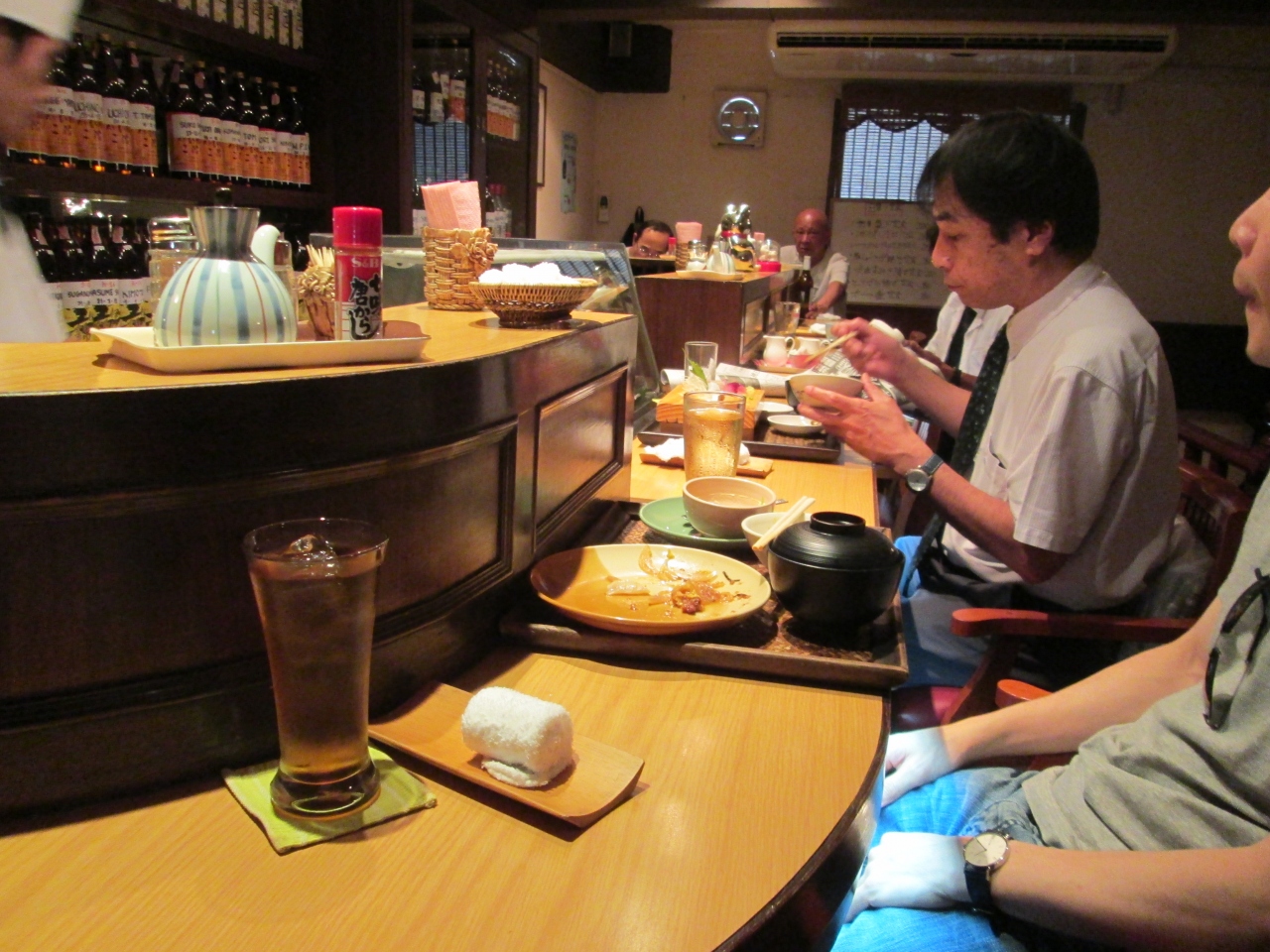 今回のGW滞在中の週末に訪問しました。金曜のランチと言えばここの刺身盛り定食ランチ200バーツを食べます。お客さんも知っているのかほとんどこのメニューを注文していました。13時過ぎていましたが、この日は満席状態で席が空くのを待っていました。