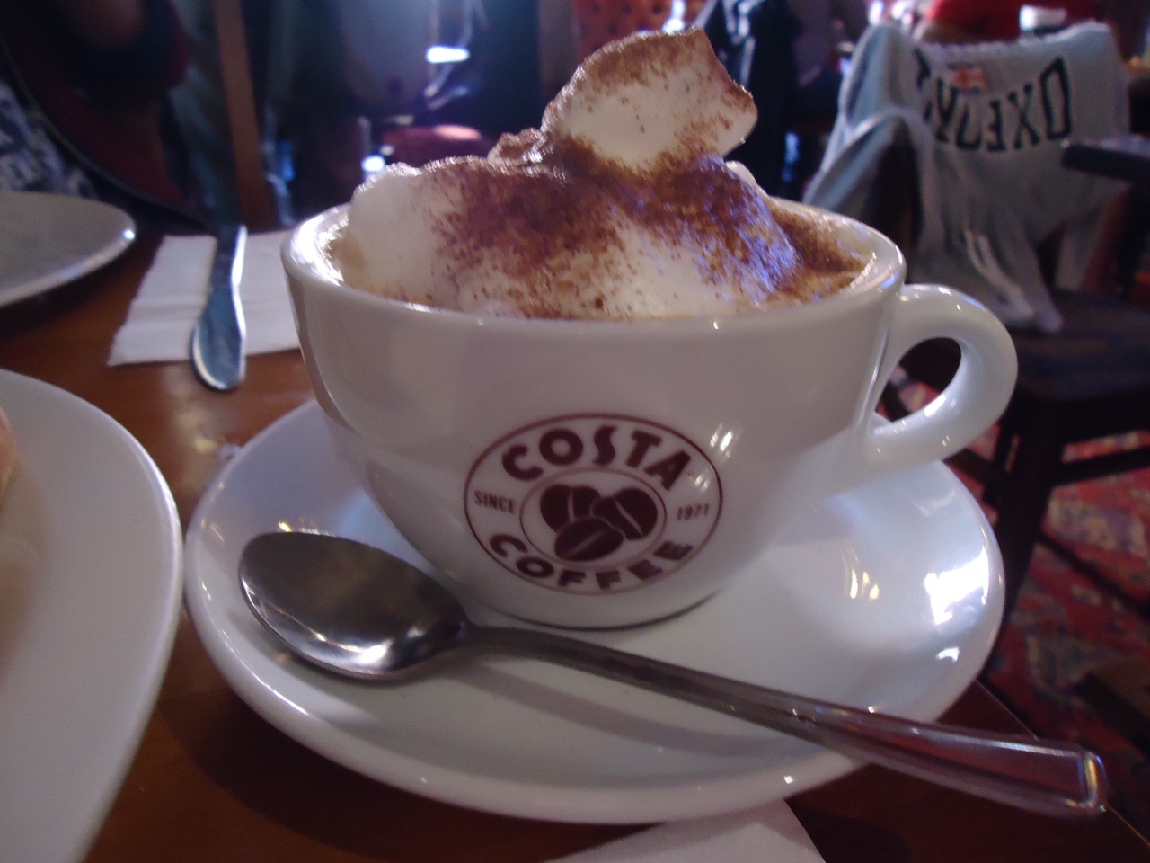 pret a manger同様、駅構内、スーパー、パブ、どこにでもあります。パブにあるばあいは、入り口にCOSTA Coffeeって書いてあります。costa好きの友人は、それを見つけて、食事はここにしよう、といってパブに入っていきました。