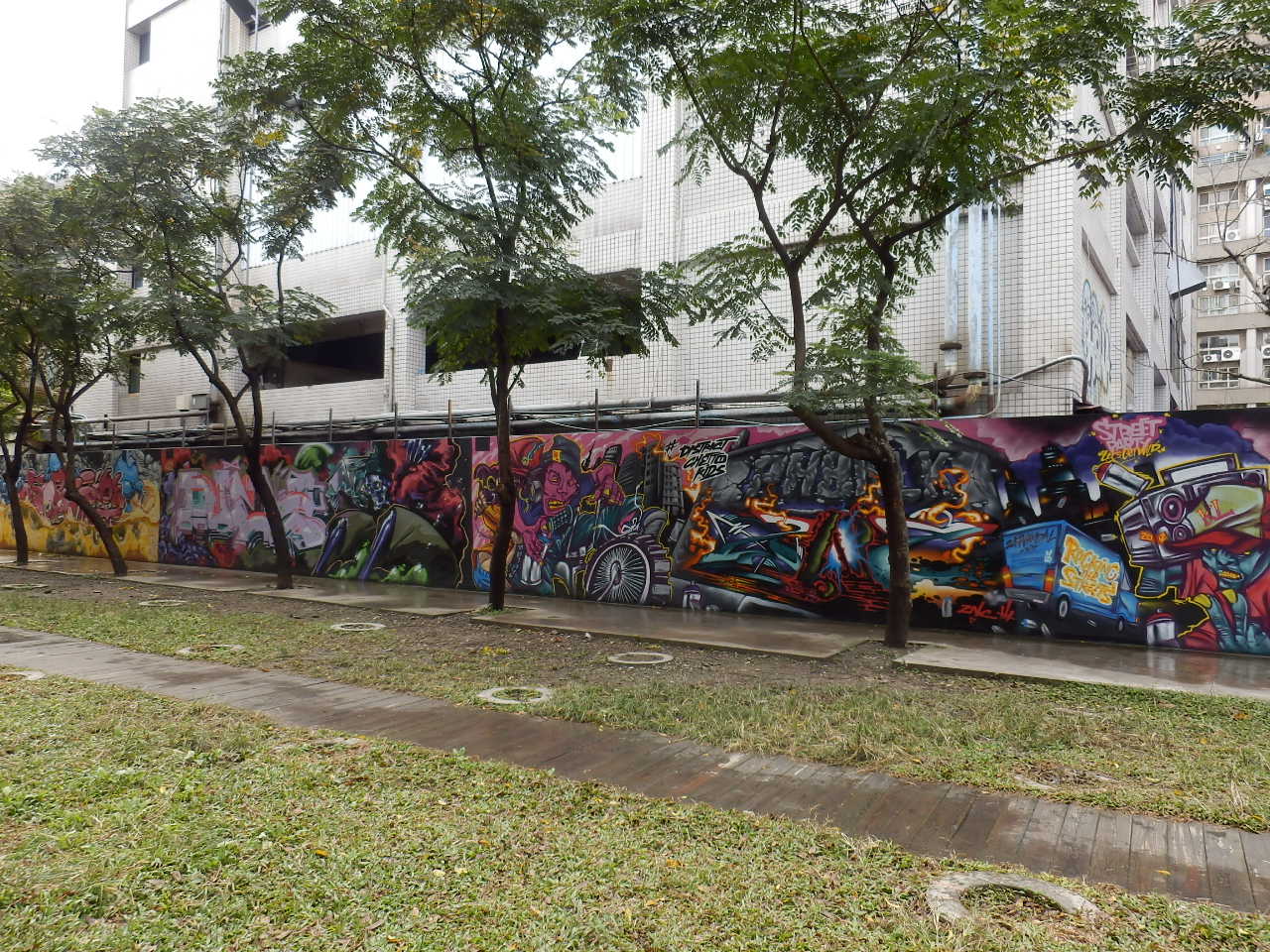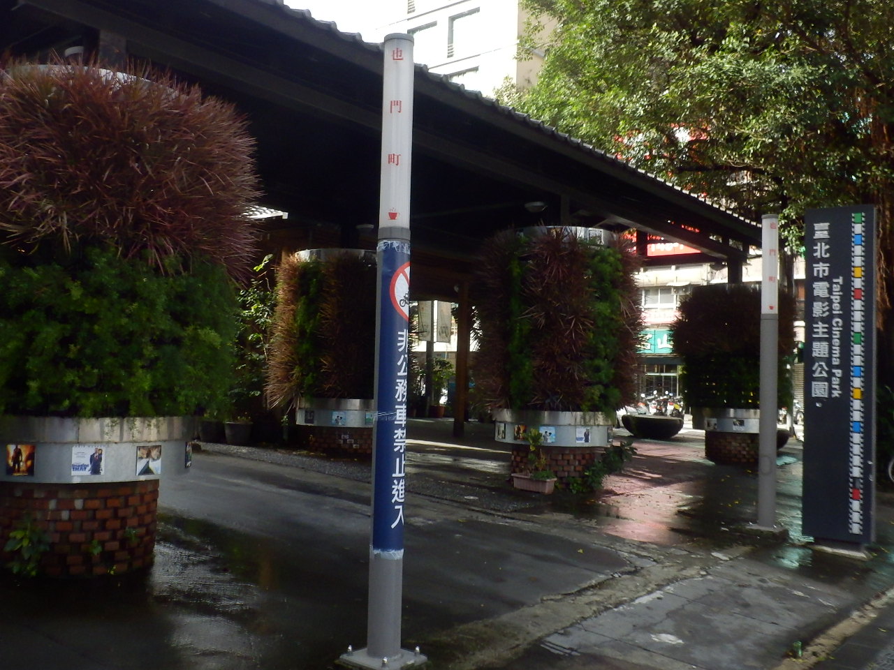 西門町の映画館が並ぶ通りを西へ進むと、広い空き地のような公園があり、電影主題公園と名付けられていました。赤レンガの古びた建物は日本統治時代に建てられたガス会社のビルをリニューアルしたもののようです。広い芝生のスペースに、レンガの建物、壁はアートなペインティング。公園を見た限りでは映画との関係性はよく分からなかったのですが、レンガの建物でイベント等は開かれているようでした。
