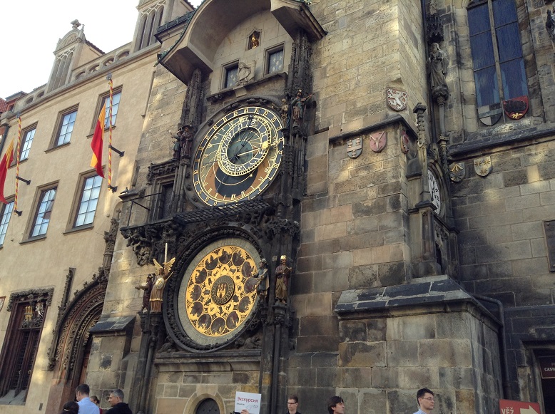 ちょうど、からくりが動く時間ごろに通りかかったので、待ってみました。時間が来ると、時計の上の窓二つが開いて、使徒のお人形が見えた~と思ったら、ちょっと回って窓は閉じられました。え、もう終わり?とつい言ってしまいました。時計塔そのものはステキでした。