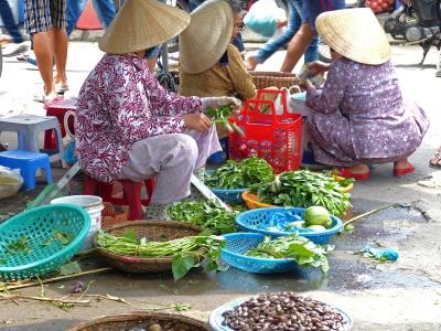 ホイアン旧市街の東端にあるホイアン市場。市場が賑わうのは、やはり午前中!活気ある市場を見るなら、午前中がオススメです。売られているのは、新鮮な野菜、果物、魚、肉類など...値札がついていないので、いちいち交渉しなければいけないのが面倒ですが、市民も利用する市場なので、そんなに高くはなさそうです...。