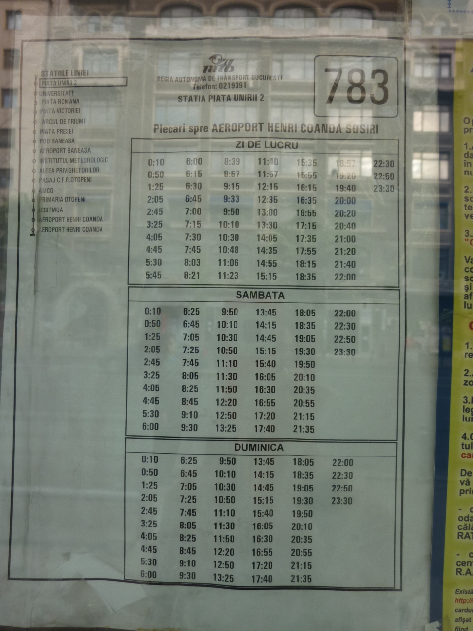 (時刻表と停車地 http://www.ratb.ro/v_bus_expres.php)