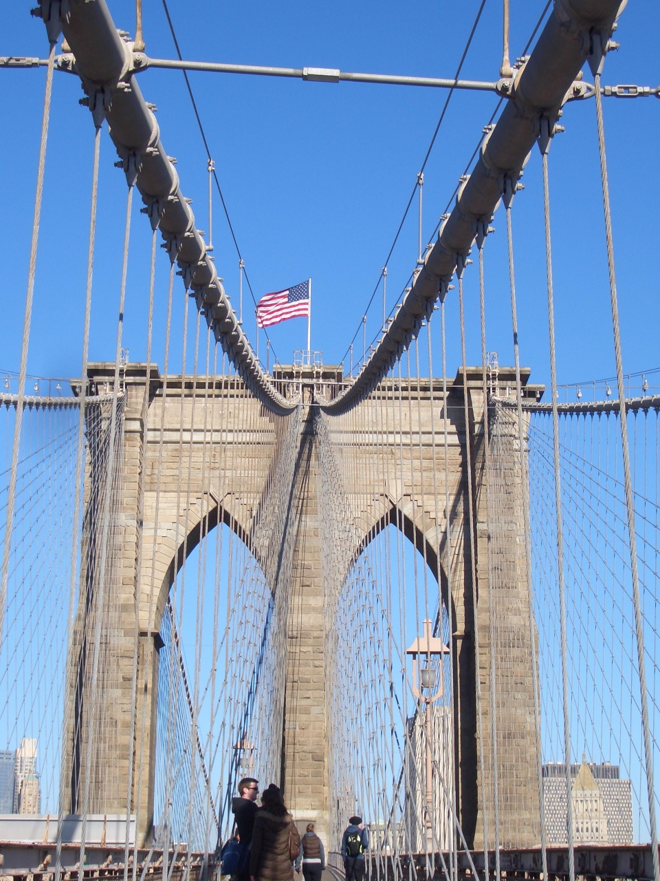 地下鉄でブルックリン側まで行き、マンハッタン側まで歩きました。駅からは分かり易い案内がある訳ではないですが、なんとなく橋の入口まではたどり着けました。橋から見るマンハッタンの景色も最高です。朝だったので危険な雰囲気は全くなかったです。