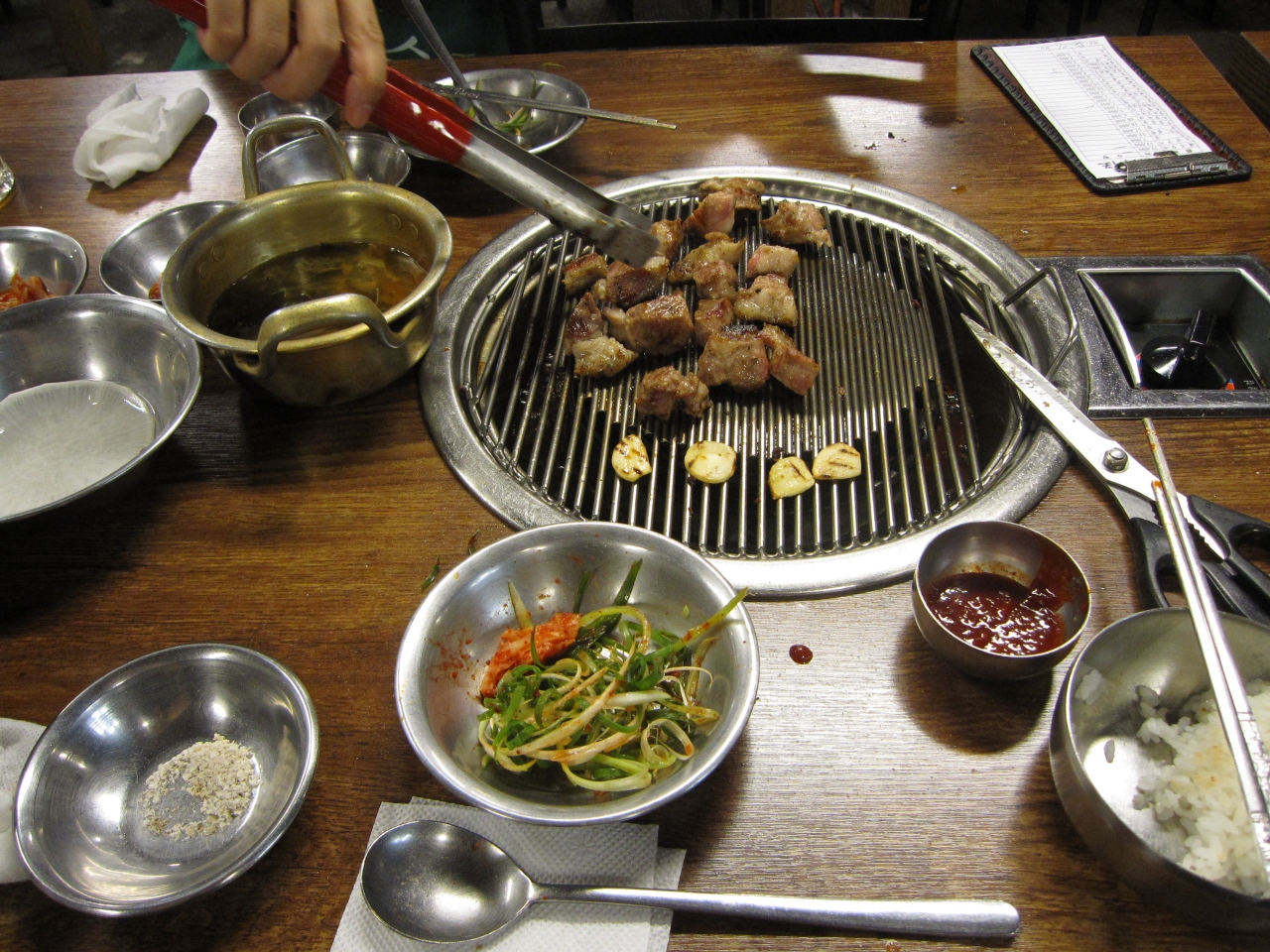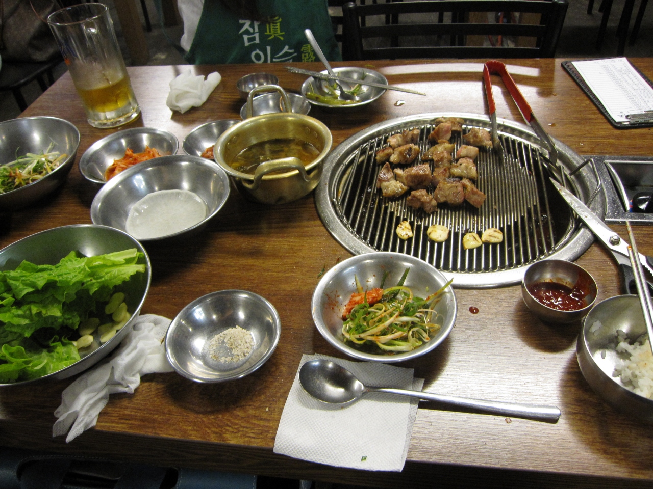 地元客でいっぱいの豚焼き肉専門店です。すぐ近くのロッテシティホテルに泊まったのですが、目の前でした。地下鉄の駅からもすぐで、アクセスバツグンです。日本語メニューもあり、韓国語が出来なくても注文できます。日本客もちらちら来ていました。お味も値段も明洞で食べるよりずっと満足出来ます。オススメです。