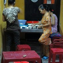 廣勝家(クアンタンの家)は、300年前に建てられた平屋の伝統的建築様式の建物です。中に入ってみると、立派な柱や梁が黒光りしていて、歴史の深さをひしひしと感じます。建物は、伝統的うなぎの寝床スタイルで、奥へ奥へと進むと、家人のみなさんが、何かを調理中でした。歴史的な建造物ですが、ちゃんと今もそこで生活が営まれています。