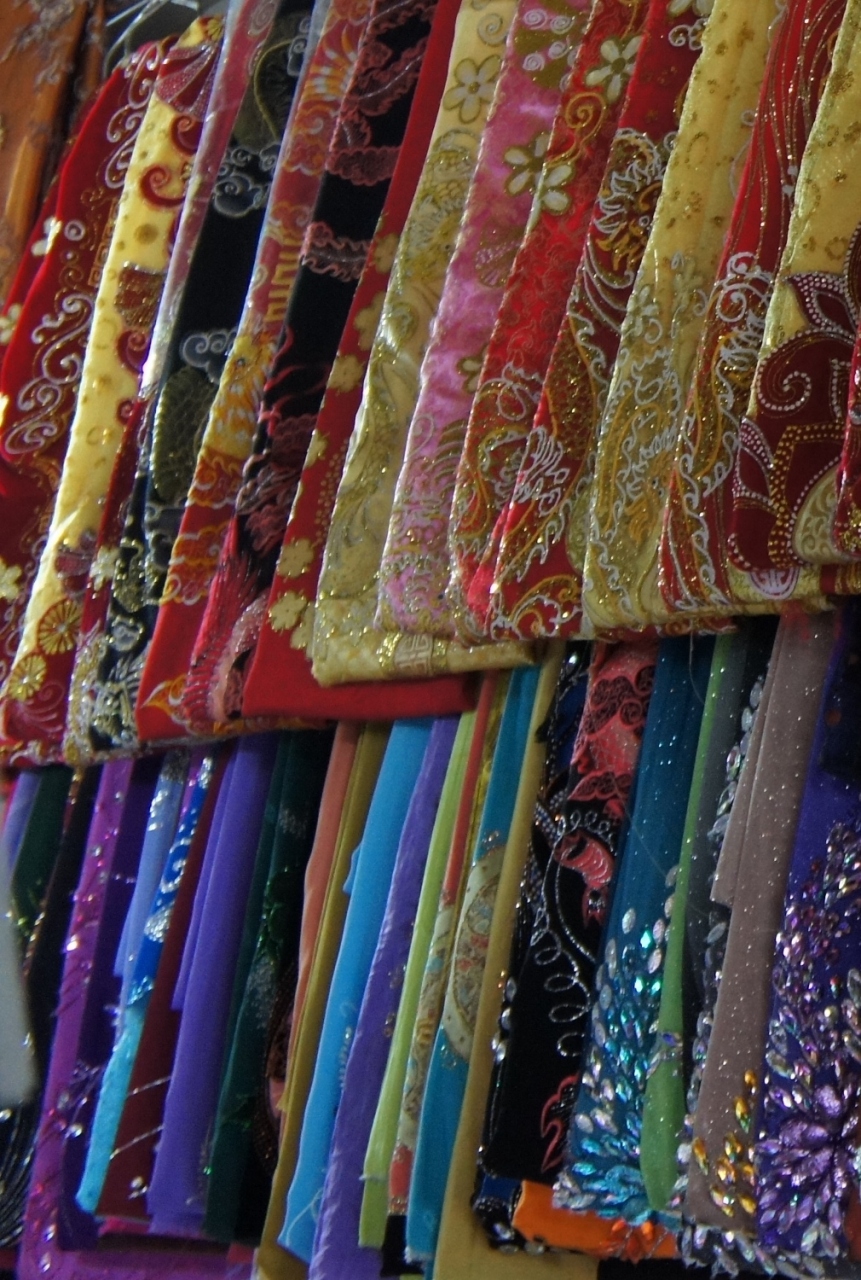 ホイアン市場と同様に、布市場も午後は閑散としています。中に入ると、小さな布屋さんがズラリと並んでいます。クチコミで、町のテーラーより安いとのことで、まず最初に訪れてみましたが、布のクオリティがあまり良くありませんでした。布を広げてもらうと、大きなシミがあったりしたので、買う際にはきっちりチェックをした方がいいかもしれません。町のテーラーより幾分安いのは安いですが、安心感は町中のテーラーの方が上だと思います。