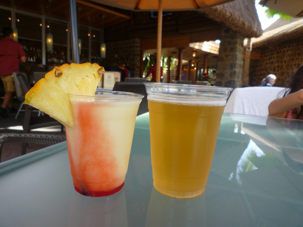 昼はプールサイドまで、飲み物を持ってきてくれますが、カップはプラスチックです。