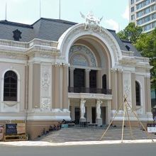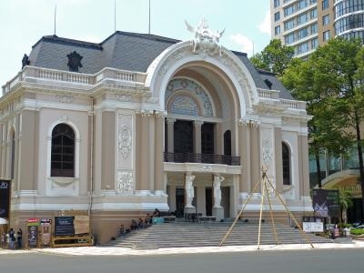 ドンコイ通りのド真中に、ホーチミンのオペラハウス「市民劇場」があります。こちらも、フランス統治時代の建造物で、リノベーションを重ねているため、あまり古い感じはありませんが、いい雰囲気の建物です。オーケストラのコンサートやバレエなどの公演があるようですが、私が訪れたときは、連日「サムソン」社の携帯イベントで使用されていました。