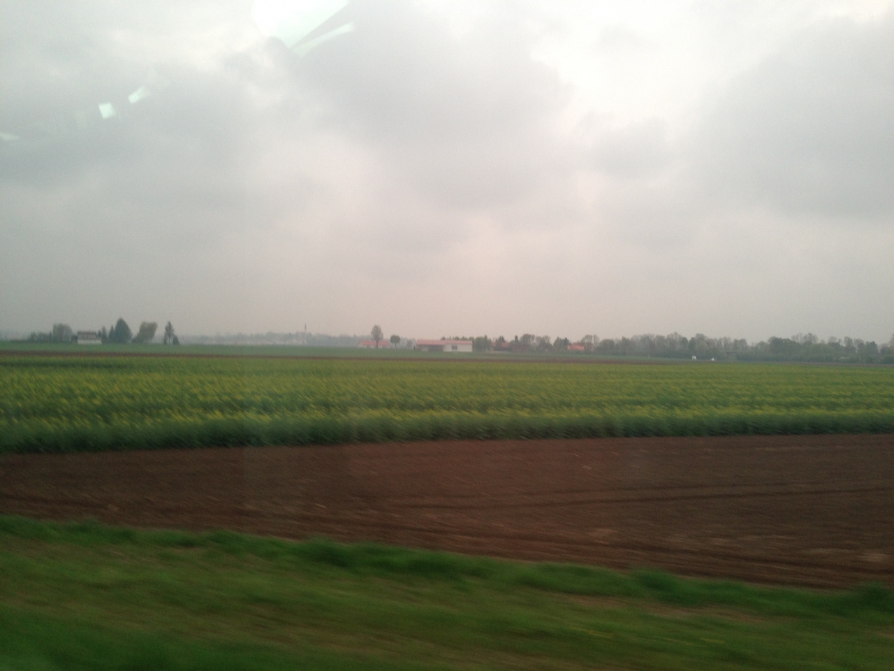 ミュンヘンの空港からテルメエアディングに行く時には必ずタクシーを使います。片道大体30から35ユーロ程度です。ドイツに来たからにはベンツのタクシーに乗ってみるのはいかがですか。写真はテルメエアディングに行く途中にタクシーから撮った景色です。