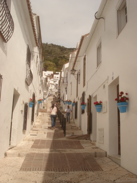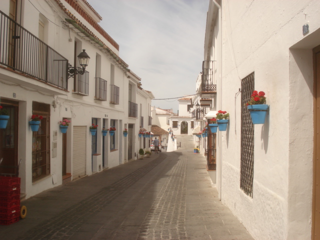 ミハス全体が白い町として有名だけれども、その中でもこのサン・セバスチャン通りは土産物屋もあり坂にもなっていて美しさが際立ちます。