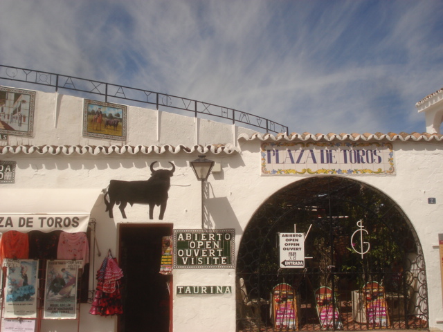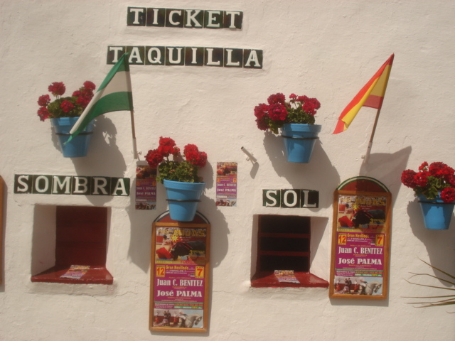 1900年に造られたという世界最小ともいわれる闘牛場はこの村にあったかわいいものです。チケット売り場のきれいに飾られた花やデザインがきれいです。