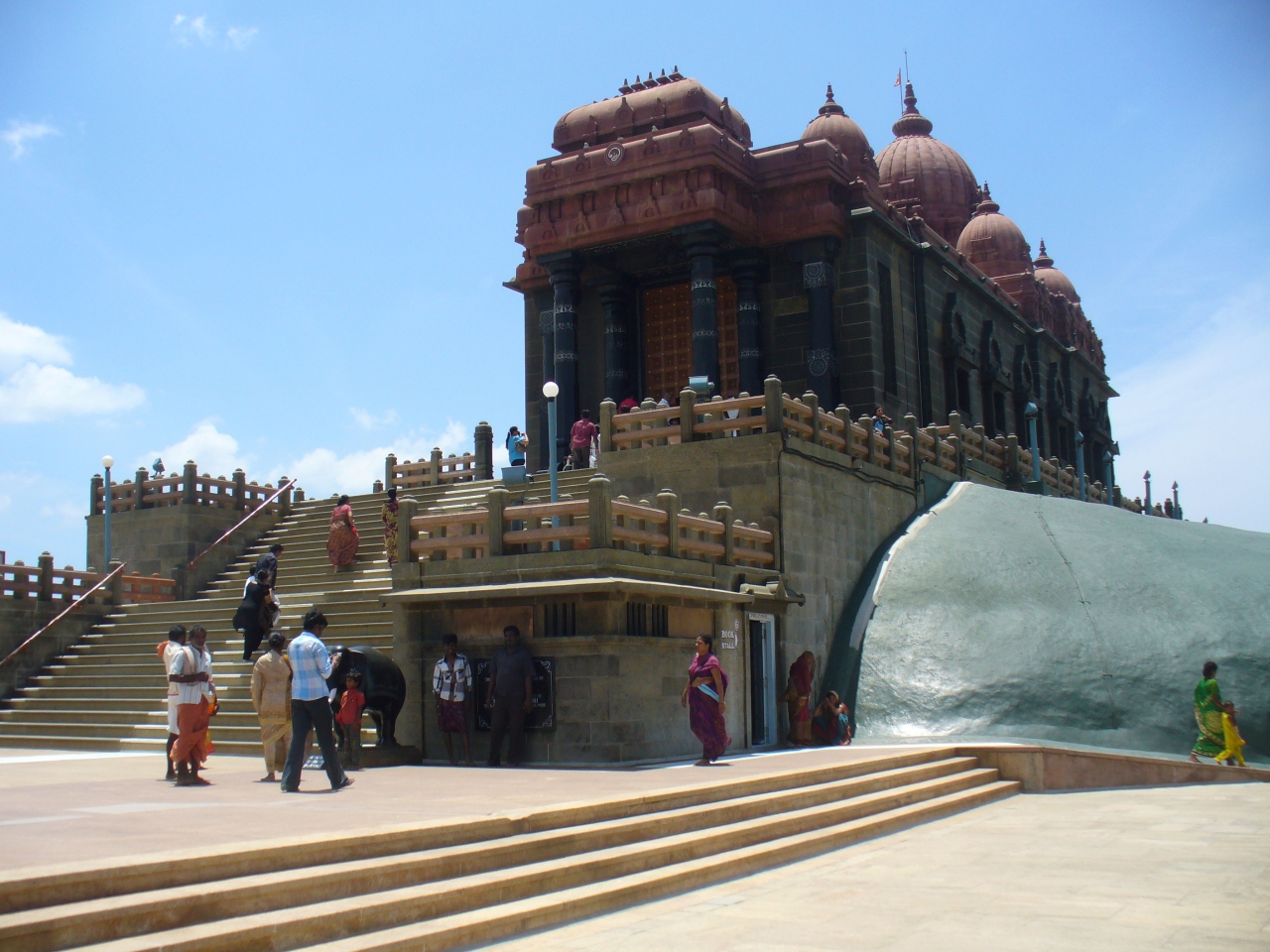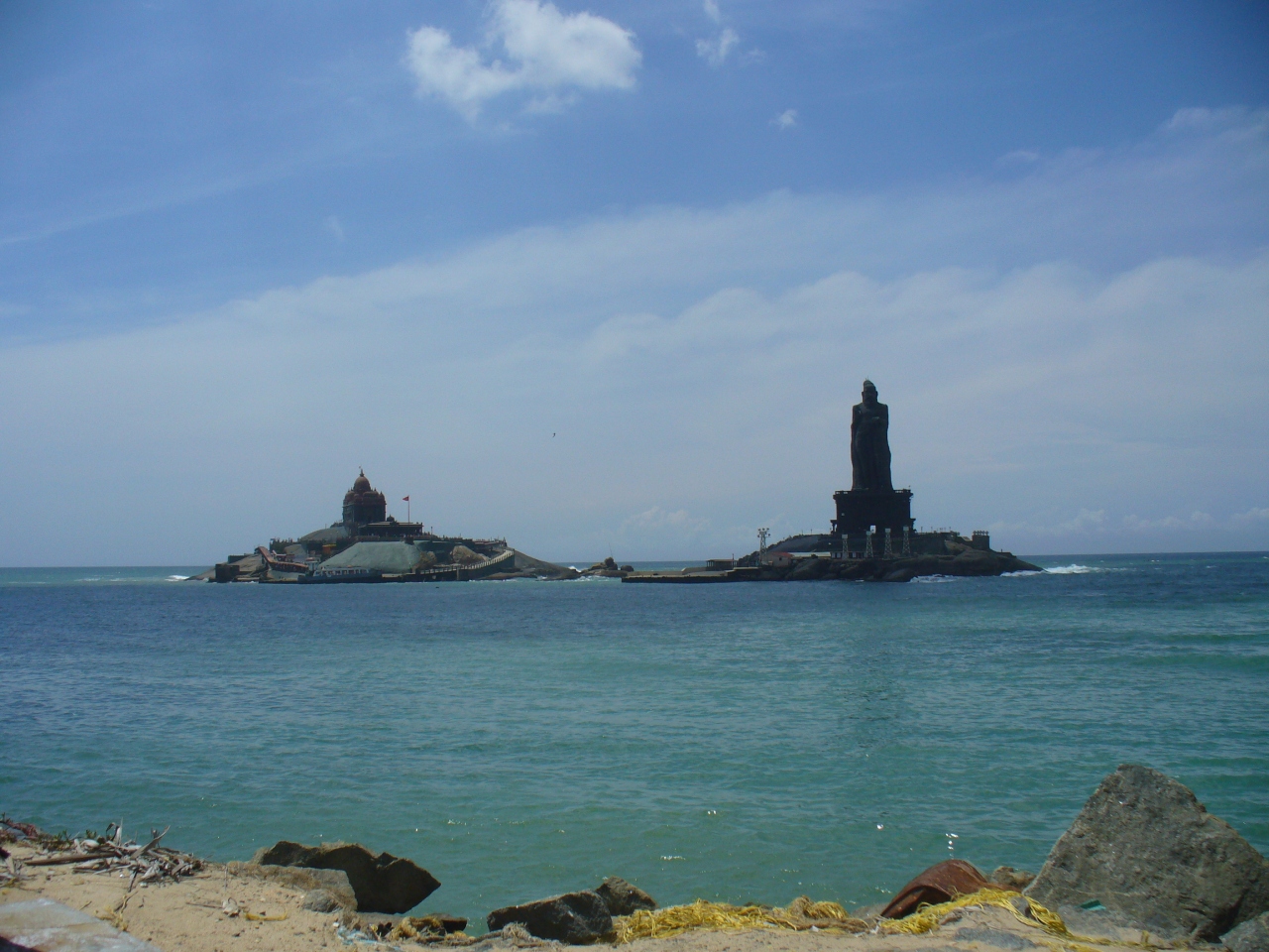 岩(島)全体は土足厳禁で、靴を脱がなければならない。厳しい陽射しが岩に照りつけ、足裏が石焼状態になるので注意が必要。寺院や記念堂に祀られている神様や聖者の像などは見もの。そして海を見渡せば東にベンガル湾、南にインド洋,西にアラビア海と、三方に海が広がり、インドの最南端を実感できる。