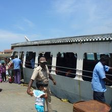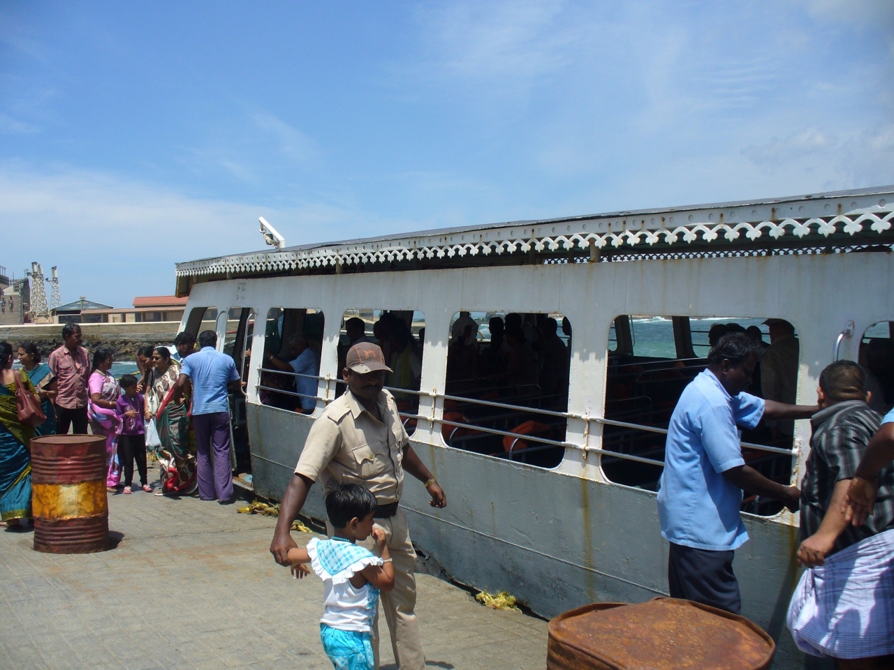 ヴィーヴェーカーナンダ岩は、ヒンドゥー教の女神クマーリーの足跡といわれる岩のくぼみ(古い彫刻?)をご本尊とする寺院とともに,19世紀の聖者ヴィーヴェーカーナンダが瞑想を行った場所としての紀念堂がある島。神様の足跡に聖者の瞑想の地、ということで、ヒンドゥー教徒にとっての聖地というかパワースポットとなっている。フェリーで5分くらいのところにあるが、フェリー乗り場にはインド各地から観光客でごったがえしており、平日に行ったにも関わらず、フェリーに乗るのに30分くらいかかった。ぼんやりしていると、後ろの客がどんどん前に入り込んでくるので、気をつけたい。