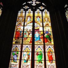 中に入ると(無料)綺麗なモザイクの床にステンドグラス。