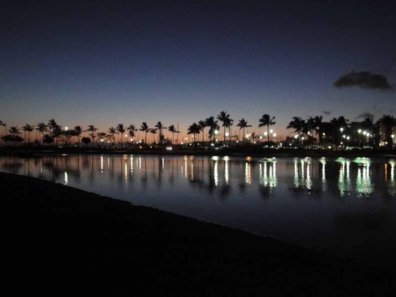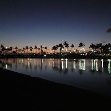 ヒルトン滞在時に毎日のようにラグーンの周囲を散歩しました。昼間のリゾートそのものの風景も素晴らしいのですが、夜も夜景が綺麗でした。日に何度か水の循環が行われているため、水は思いの外冷たかったです。それでも膝くらいまでつかって歩いているだけでも小魚の群れが見れる位、透明度は高かったです。