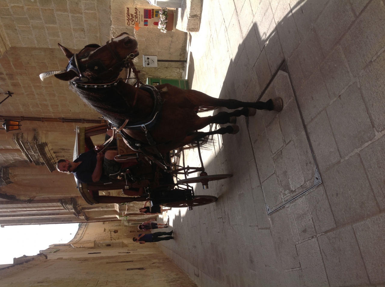 街中を歩いているとたくさん馬車と出会います。ヨーロッパの他の街でも馬車をよく目にしますが、ここマルタではヨーロッパの他の町よりも、さらに町の雰囲気にあうように感じました。本当、マルタはすばらしい街です。