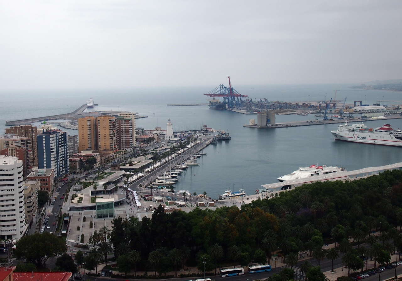 マラガ・マリア・サンプラーノ駅からタクシーで向かいました。小高い丘の上にレンガ色の城壁が見えてきます。あちこちにビュースポットがあり特に眼下の街や闘牛場と遠くに見える港はきれいです。敷地にはパラドールもあり食事もできる様です。