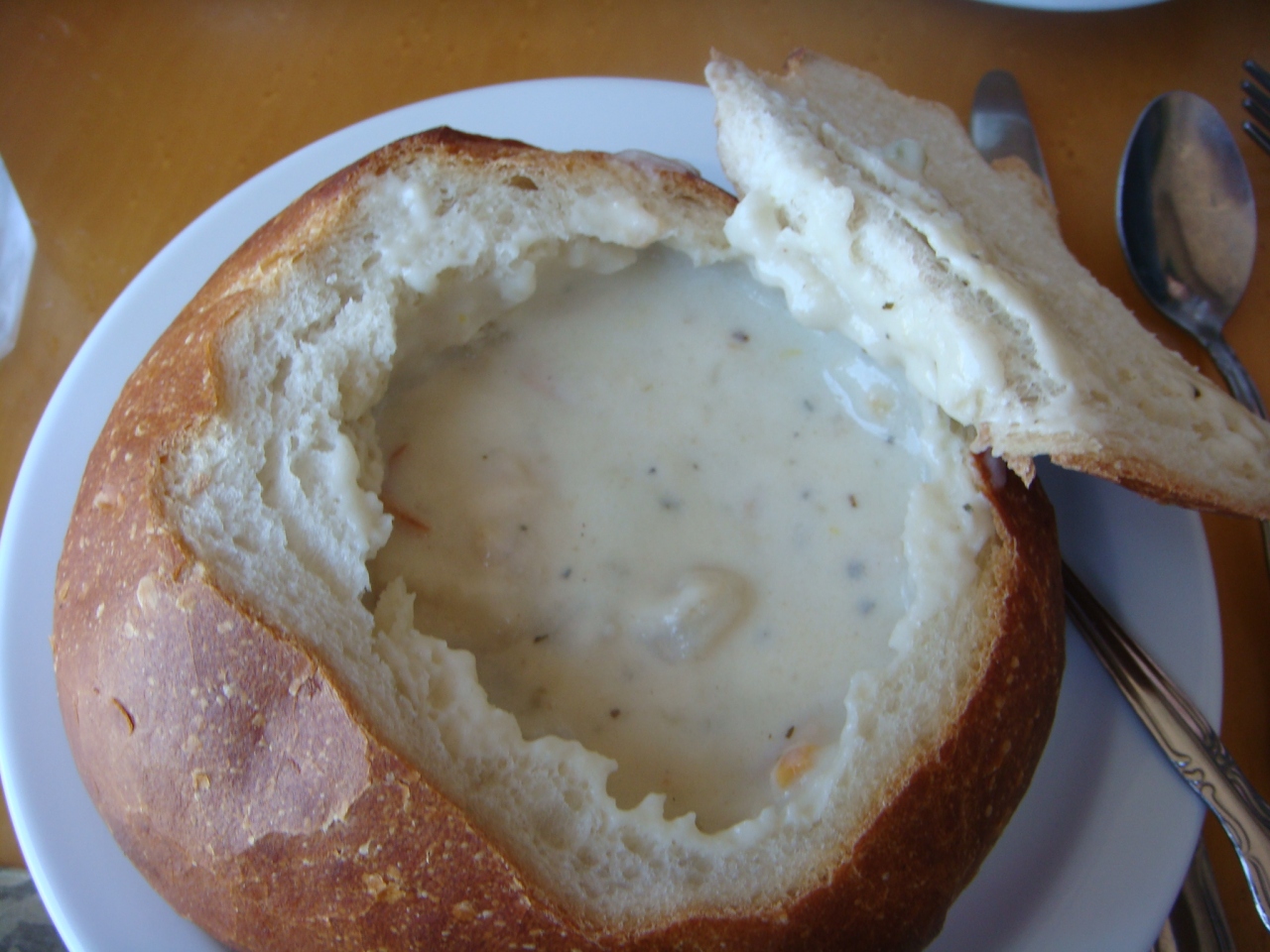 昼食にクラムチャウダーを食べたのですが、8日間の旅行の中で一番美味でした。