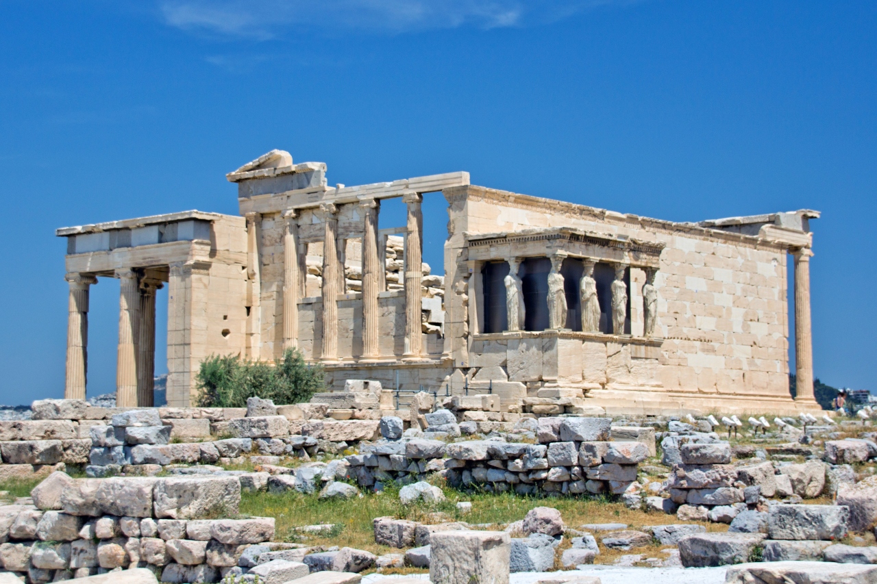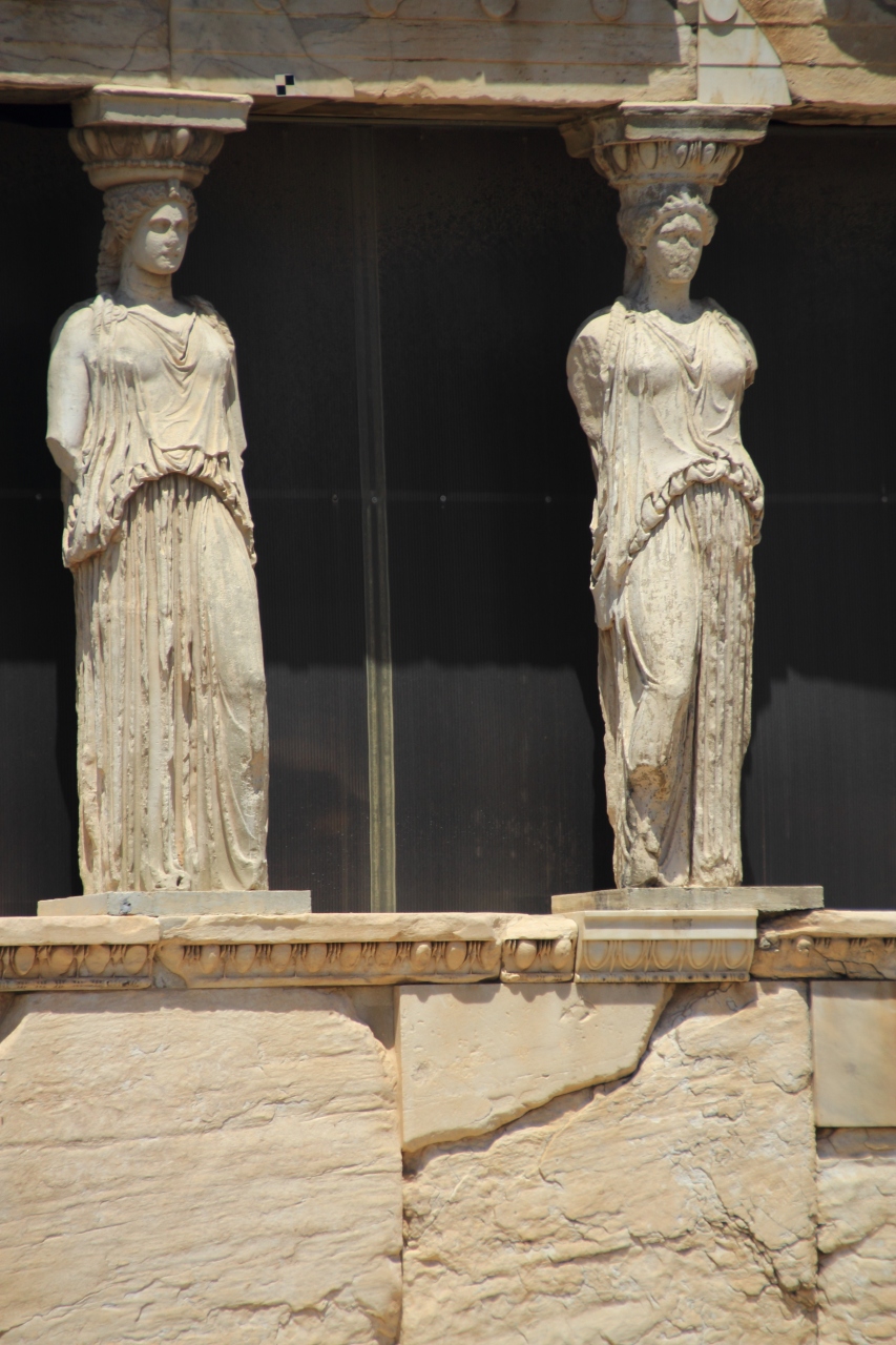 アクロポリスの丘にある神殿で、現在ここで建った姿で見ることのできる3つの神殿のうち一つです。パルテノン神殿はもちろん有名ですが、この神殿もその芸術的価値が高く、見どころの一つです。その理由は、側面に張り出した柱廊にあり、6本のカリアティードという女神の像により支えられているからです。