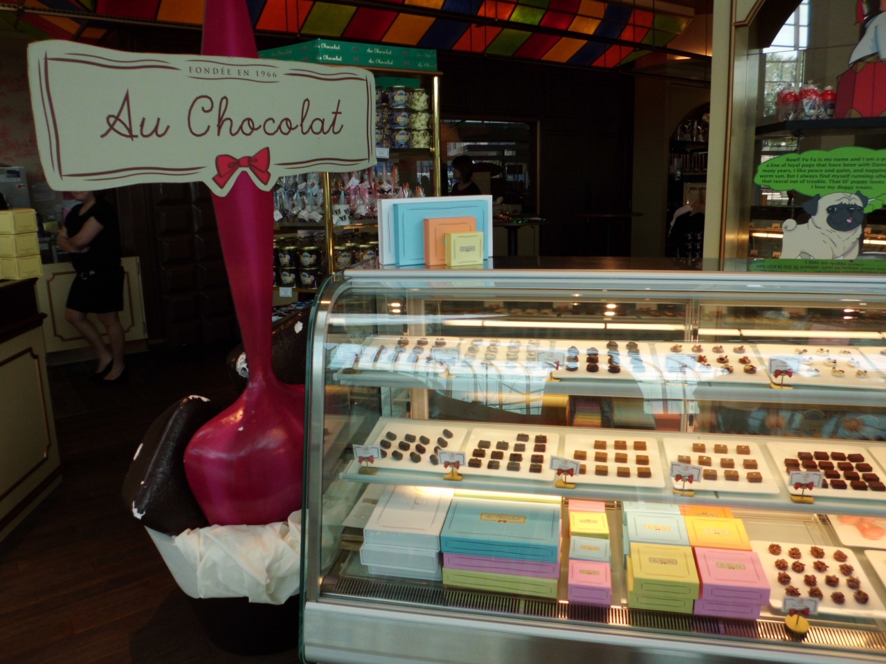 マリーナベイサンズのショッピングモールの3階のお店。下からも可愛いお店の外観がよく見えます。ショップはジェラート、ショコラ、ケーキなどスイーツがたくさん。お値段はちょっと高めですが、女子ウケはいいと思います。お店のキャラクターのグッズなども売っています。併設のビストロで食事もいただけます。