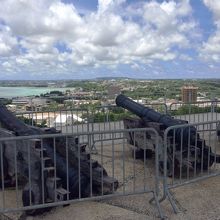 芝が綺麗で、大砲の高台から海を眺めると、綺麗で気持ち良いです