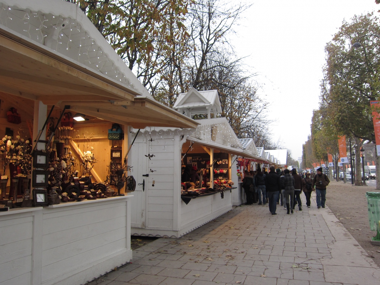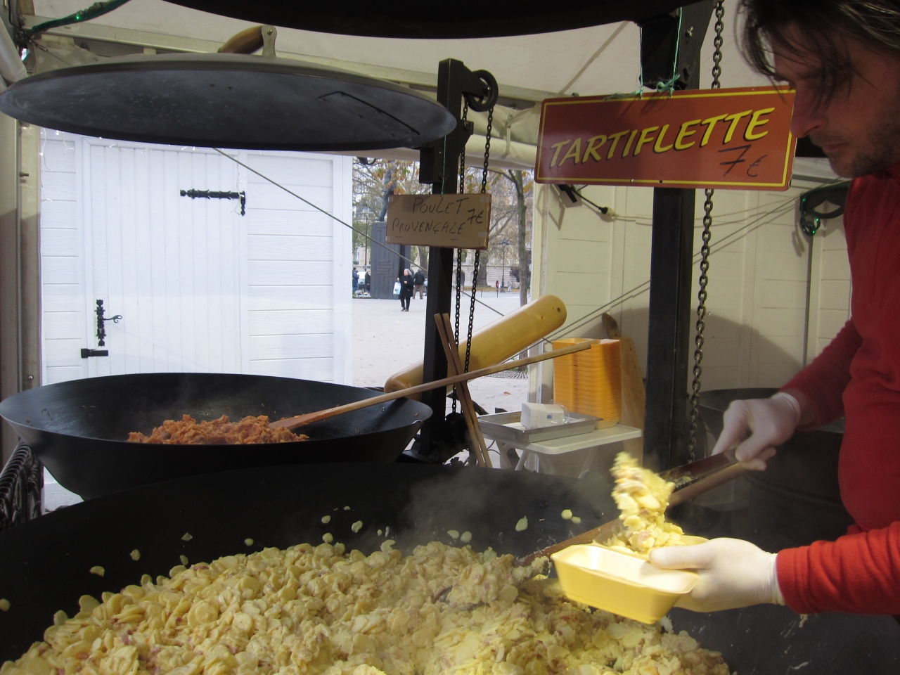 クリスマスの時期になると、通り沿いに少しだけクリスマスマーケットの屋台や遊具などのアクティビティが並びます。ドイツと比べるとさびしいけれど、さすがフランス、屋台料理はクレープ、ポテトのミルク煮どれもおいしかったです。