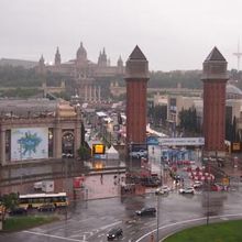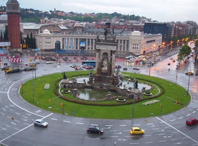ARENAS DE BARCELONA(アレーナス・デ・バルセロナ)の目の前にあります。目の前で見るとあまり迫力はありませんがアレーナスの屋上から見るとこのスペイン広場やモンジュイックの丘、バルセロナ市内の展望を楽しむことができます。空港バスもここに停車します。