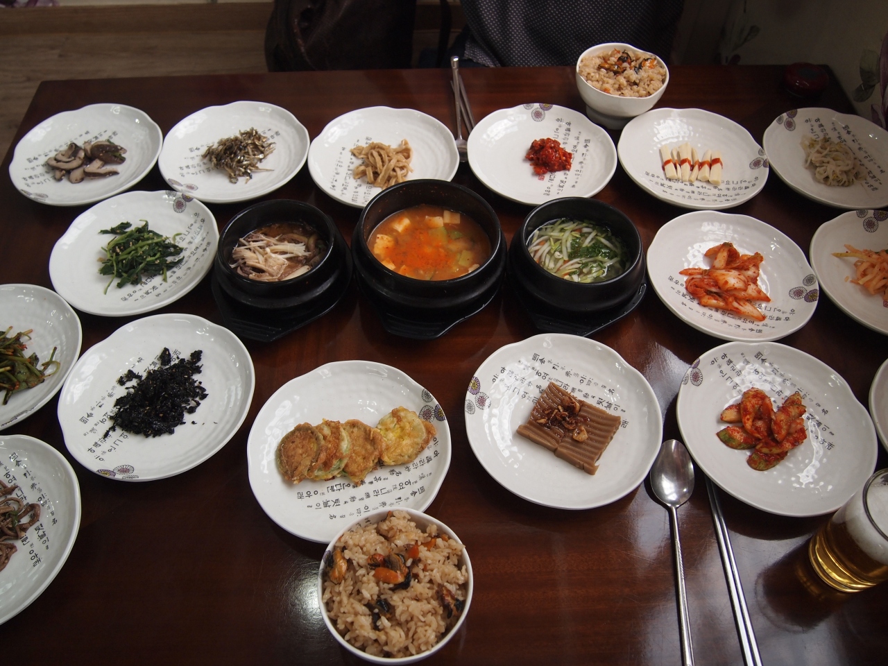 地下鉄の駅からは歩くので、市庁付近から緑11番のバスに乗って行くのが良いと思います。 食事は、ムール貝定食のほかにもありますが、殆どの方が定食を食べています。 他の食事だと、バンチャンの数が少ないようです。 土曜日の、2時近い食事でしたが並んで待つ人もいるくらい混んでいました。