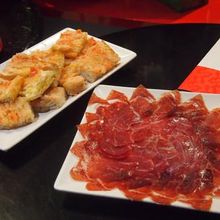 場所は2011年春にオープンしたショッピングセンター、アレーナス・デ・バルセロナの地下1階です(古い闘牛場を改装)。フードコートになった一角にあります。チェーン店みたいですけどお手軽メニューで生ハム中心のタパスが楽しめます。パンコントマテと生ハムのセットが美味しかったです。