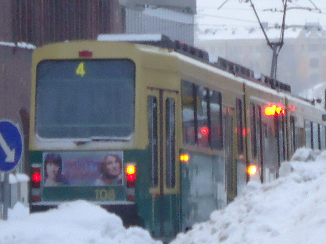 狭い市内を縦横無尽に走っているトラムです。雪の日だろうと、ちゃんと動いていました。トラムは山手線上になっていて、市内を一周することができます。私が乗った時は途中で一度電車を乗り換えましたが、市内の景色を堪能できました。