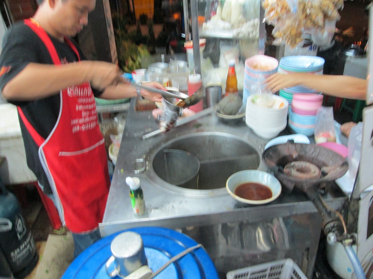 ソイ19にある屋台を利用しました。スクインピット通りにはたくさんの屋台があります。この屋台は日本では考えられませんが、コンビニの前の路上で堂々と営業しています。アソーク界隈なので観光客向け価格で30バーツぐらいでした。夜にお腹が空いたときにたべることができます。