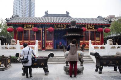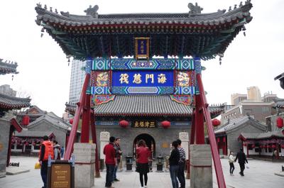古文化街の中心にある、海の神様、天后を祀った廟です。元の時代の1326年に建設が始まったといわれています。建設当時の天津は穀物を輸送する港で、海運の安全を願って、皇帝の命令で建てられたそうです。もともとの名前は天妃宮という名前だったとか。現在、古文化街のある一帯は当時は人とものが行きかう市場があった場所だそうで、その中心にあったのが天后宮だそうです。古文化街は清の時代の街並みを模して新しくつくられたものですが、天后宮だけはなんとなく当時の面影を残しているような気がしました。入場料が必要なため、天后宮の中まで入ってくる観光客は少なく、ゆっくり見学できます。