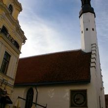 旧市街にある古い教会です。建物にはタリンで初めて取り付けられた公衆時計があります。通りを歩いていれば、格好良い時計が目に付くのですぐ分かると思います。名前は忘れましたが、すぐ横にあるカフェのチョコレートを使ったパフェはすごくおいしかったです。