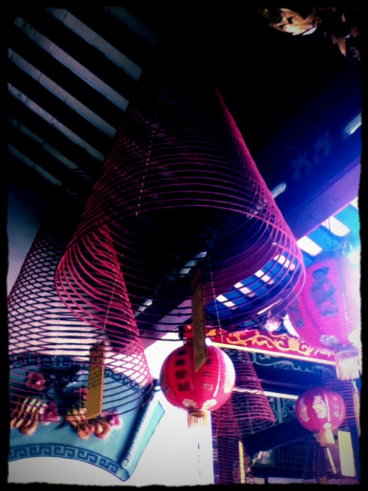 天井からは大きな渦巻状の線香と名前の書かれたタグが幾つもぶら下がっており、幾らか支払うと、どうやらそれが自分のものとなるらしい。