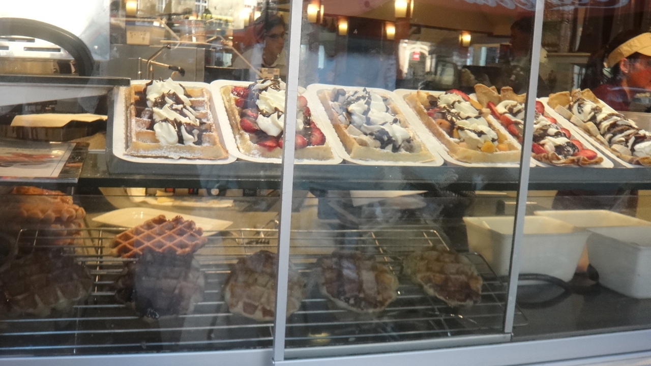 ベルギーといえばワッフル。日本でも売られているワッフルはリエージュワッフルとして売られていました。もう1つのブリュッセルワッフルは、ワッフルの上のトッピングがすごく、これ食べたら食事は入らないと感じるボリュームです。テイクアウトでも店内でも楽しめます。