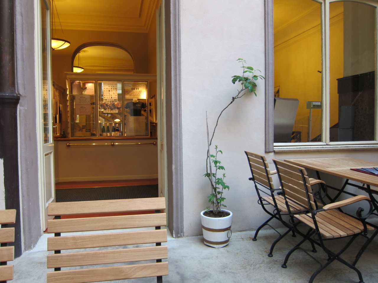 中庭風のオープンテラスの席でしたが、
