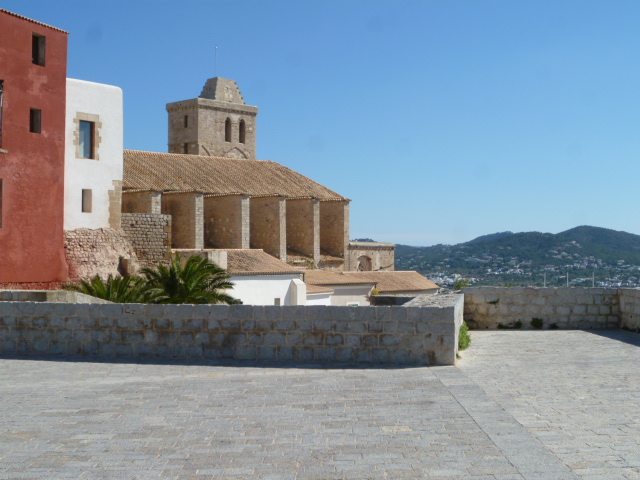 イビサタウンで一番高いところにあるので、すぐに分かります。タクシーで途中まで行き、そこから歩きました。登る途中の路地も雰囲気があって良いです。そして、何よりも上からの眺めは絶景です。イビサタウンと地中海が一望できます。港にも船が一杯。とても気持ちの良いところです。夜は行きませんでしたが、夜景も一段と綺麗なようです。