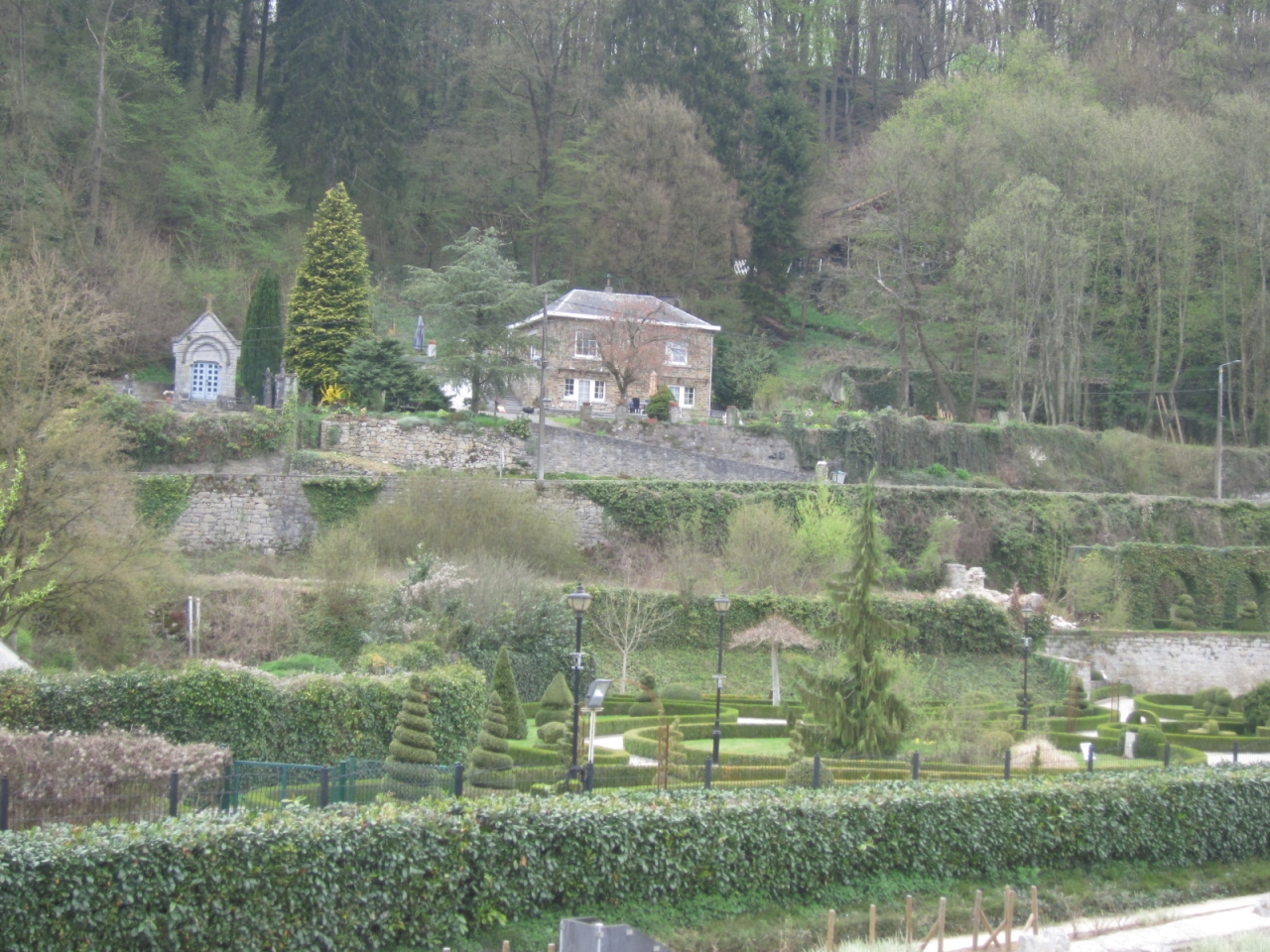 デュルビュイの街を観光した後に、駐車場へ向かう途中、川沿いにこちらのトピアリー公園を発見しました。「世界で一番小さな町にある世界で一番大きなトピアリー公園」、というのがキャッチフレーズだそうです。広大な敷地に様々な形のトピアリーが作られています。有料となっています。