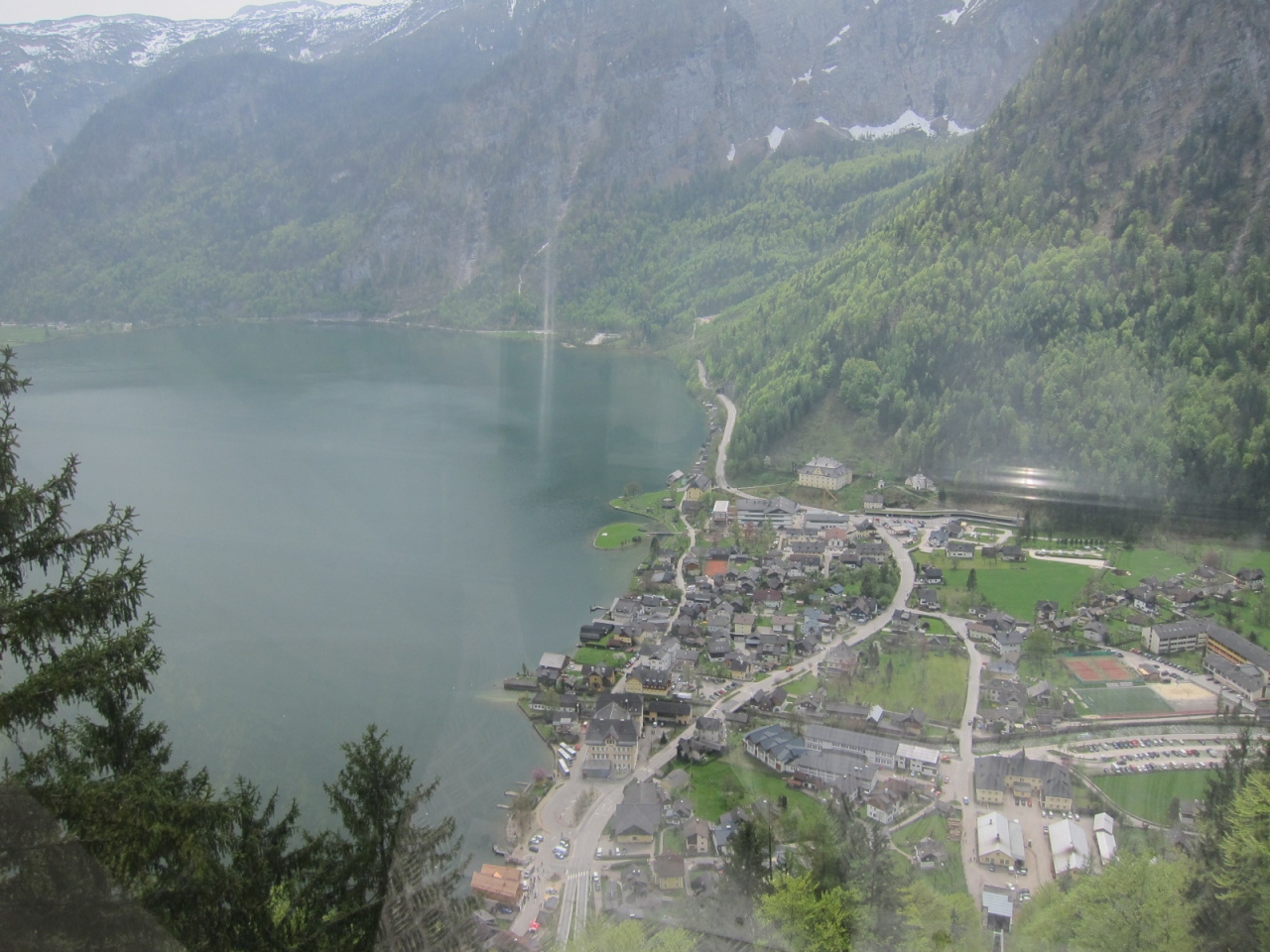 ケーブルカーで上がって行くので途中景色も、ハルシュタット湖を